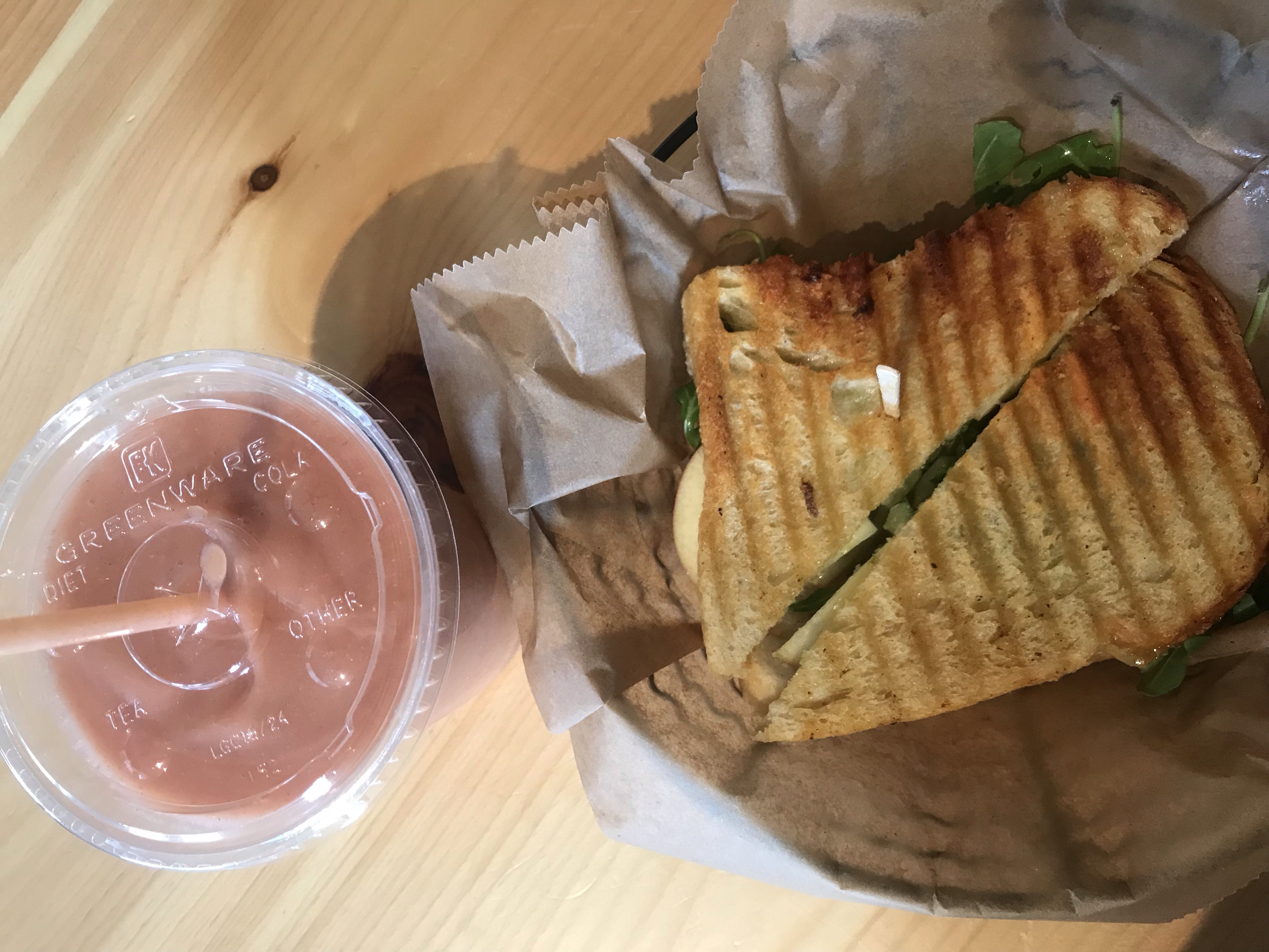 This is the “harvest apple grilled cheese” at Heirloom Food Company. Pictured is also the “summer solstice smoothie”. The grilled cheese was very unique and not something I would normally eat, but I enjoyed it. The apple slices added a subtle crunch, and the slight drizzle of honey added a touch of sweetness.